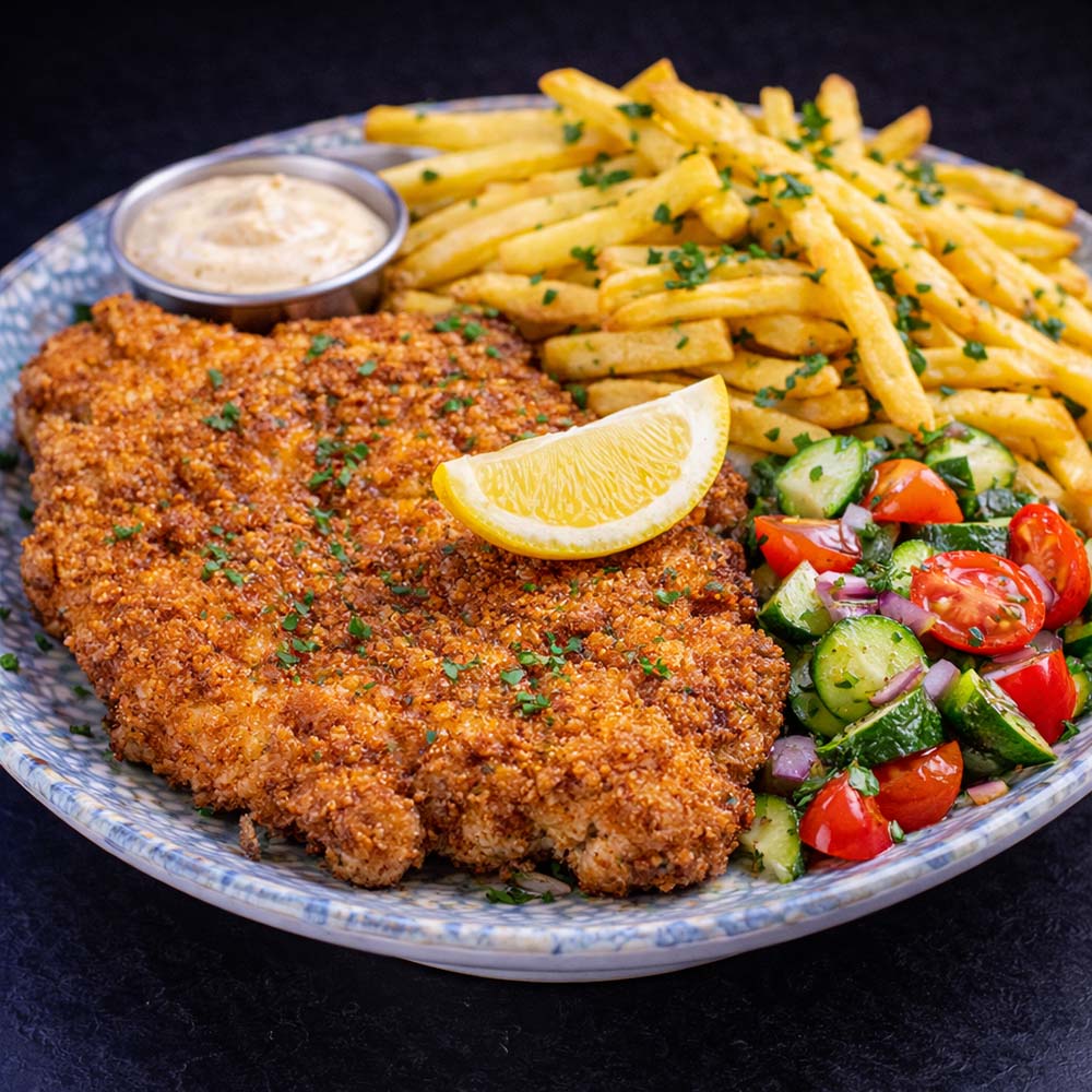 שניצל פריך מחזה עוף עם לימון ותוספת לבחירה